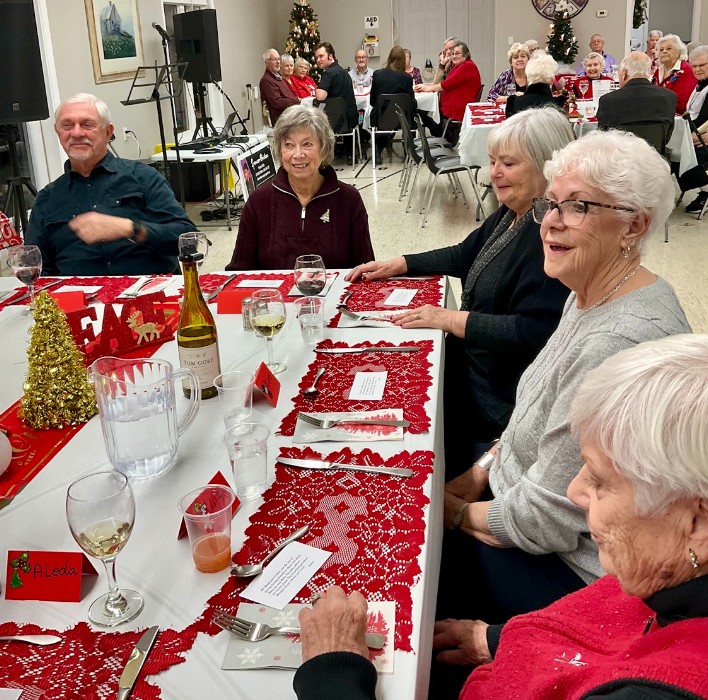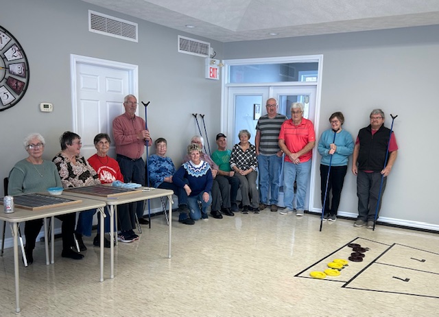 Faith Maple Hall is a communal building with a well-equipped kitchen, board/meeting room, library, office, and a large hall area to hold suppers, card games, shuffle board, dances etc.
