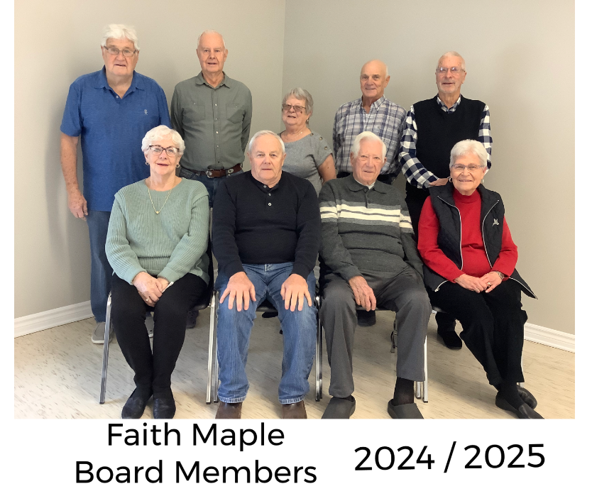 Faith Maple Hall is a communal building with a well-equipped kitchen, board/meeting room, library, office, and a large hall area to hold suppers, card games, shuffle board, dances etc.